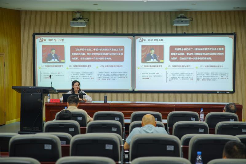 为深入学习贯彻习近平总书记关于党纪学习教育的重要讲话和重要指示精神,深入学习贯彻新修订的《中国共产党纪律处分条例》,进一步增强全体党员干部的纪律意识和规矩意识,推动党纪学习教育走深走实,6月7日下午,学院邀请学校纪委办公室案件监督管理室主任、监察处副处长曾鸣鸣作党纪学习教育专题辅导讲座,全体党员干部参加学习。学院党委副书记、纪委书记、副院长(兼)秦小红主持学习会。